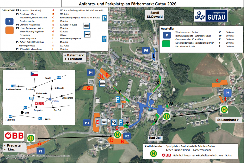 Heuer kann der Färbermarkt entspannt, einfach und umweltschonend mit dem öffentlichen Verkehr erreicht werden. Sparen Sie sich die Parkplatzsuche und kommen Sie entspannt beim Färbermarkt in Gutau an.